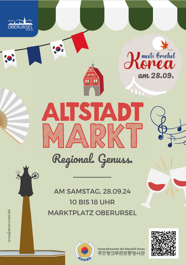 Korean Consulate General and the city Oberursel invite: „Altstadtmarkt.Regional.Genuss“ – Saturday, 28.09.2024, 10 am-6pm
